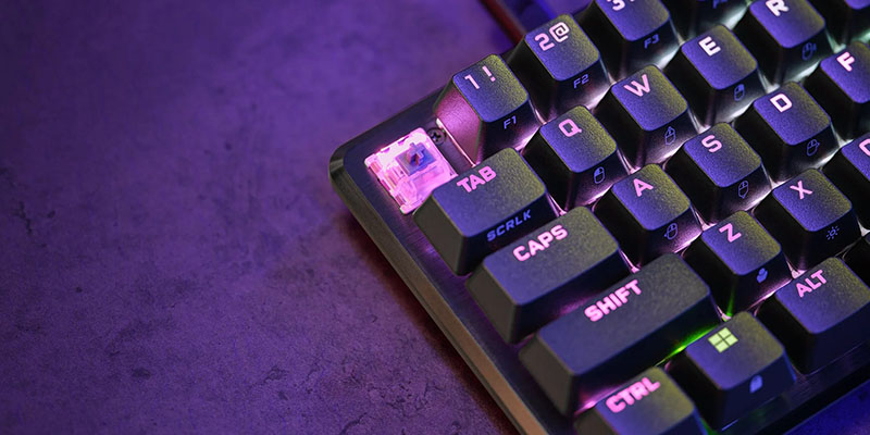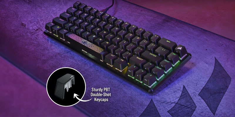 Bàn phím cơ Corsair K65 PRO MINI trang bị Keyswitch CORSAIR OPX độc quyền cung cấp đầu vào siêu nhanh với hành trính phím ngắn và phím bấm mượt mà.