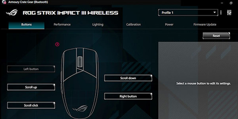 Giao diện người dùng trực quan của Armory Crate cho phép bạn dễ dàng điều chỉnh chuột ROG Impact III Wireless cho phù hợp với phong cách chơi của bạn — điều chỉnh cài đặt hiệu năng và hiệu chỉnh bề mặt, nút chương trình và bản đồ, tùy chỉnh hiệu ứng ánh sáng, v.v. Bạn thậm chí có thể theo dõi số liệu thống kê phần cứng trong khi chơi game để phân tích dữ liệu.