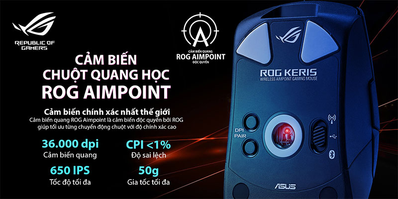 Cảm biến quang ROG AimPoint 36.000 DPI có độ chênh lệch CPI dưới 1%, cho phép bạn theo dõi và flick với độ chính xác tuyệt đối.