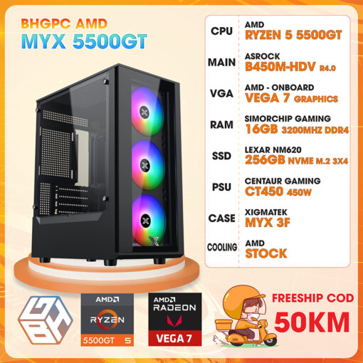 Hãy là người đầu tiên nhận xét “BHGPC AMD MYX RYZEN 5 5500GT / B450M / 16GB / 256GB”