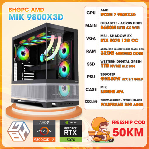 Hãy là người đầu tiên nhận xét “BHGPC AMD RYZEN 7 9800X3D / B650M WiFi / RTX 5070 12GB / 32GB DDR5 / 1TB”