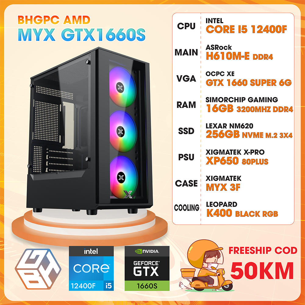 Đặt mua BHGPC GAMING MYX CORE i5 12400F / H610M / GTX 1660 SUPER 6G / 16GB / 256GB