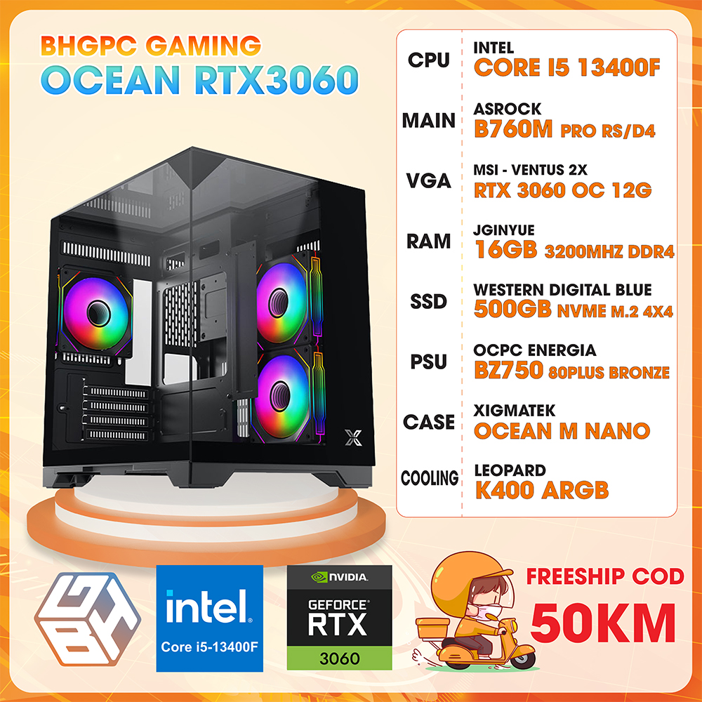 Hãy là người đầu tiên nhận xét “BHGPC GAMING OCEAN CORE i5 13400F / B760M / RTX 3060 12GB / 16GB / 500GB”