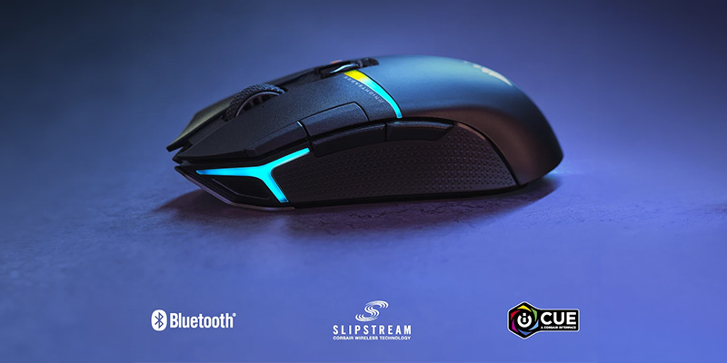 Chuột không dây Corsair Nightsabre RGB được thiết lập với khả năng kết nối đa dạng. Ta có thể kết nối adapter wireless với cổng cắm USB, kết nối với Bluetooth hoặc dùng dây USB rất tiện lợi trong nhiều trường hợp.