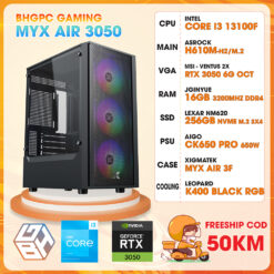 BHGPC GAMING MYX AIR CORE i3 13100F / H610M / RTX 3050 6G / 16GB / 256GB