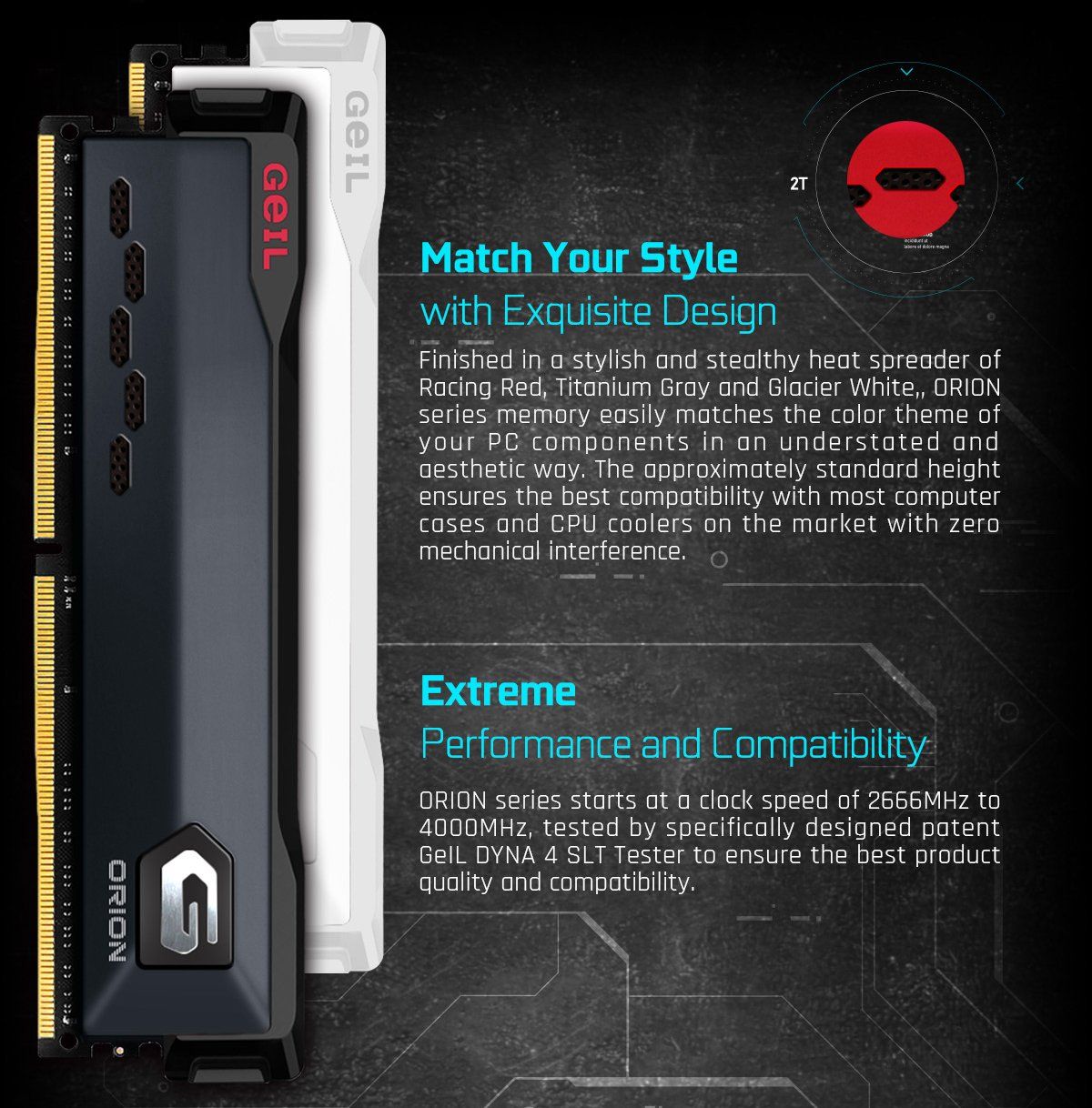 RAM GEIL ORION GRAY – 16GB (1x16GB) 3200MHz DDR4 ( GOG416GB3200C16BSC )