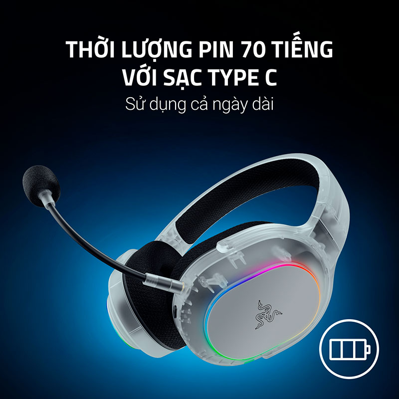 Tai nghe cung cấp thời lượng pin lên tới 70 giờ khi tắt đèn và 30 giờ khi bật hiệu ứng RGB, đáp ứng nhu cầu sử dụng liên tục trong nhiều ngày. Đặc biệt, chỉ với 15 phút sạc nhanh, bạn đã có thể sử dụng ngay 6 giờ – quá lý tưởng cho người thường xuyên di chuyển hoặc làm việc với cường độ cao. Cổng sạc USB-C tiện lợi giúp sạc nhanh và an toàn hơn.