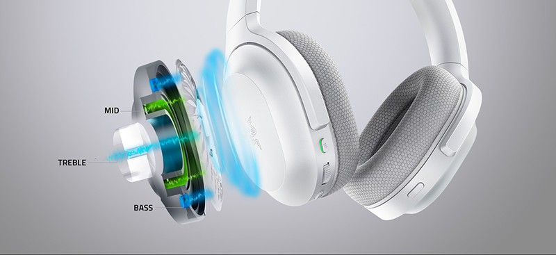 Razer Triforce Titanium Driver âm thanh 50mm Thiết kế màng loa 50mm để tăng cường trải nghiệm âm thanh phong phú giúp tăng khả năng chơi game của bạn, tạo ra các âm tần và âm trung rõ ràng cũng như âm trầm sâu. |
